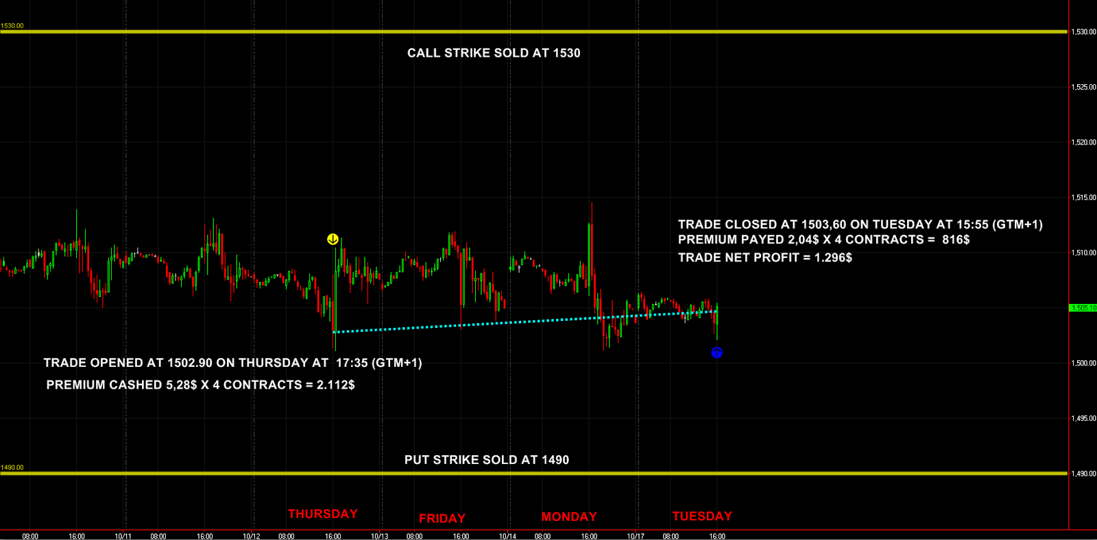 Volvemos a beneficios tras bajar de 5 a 4 contratos , siguiendo nuestra hoja de money management con una estricta disciplina . El mercado no se movio........... que quiere decir esto ? Dinero a nuestro bolsillo.
